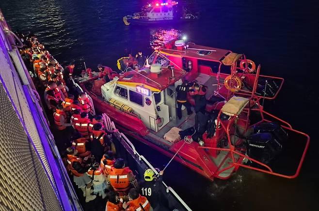 28ÀÏ ´º½º1 µî¿¡ µû¸£¸é ¼Ò¹æ ´ç±¹Àº À̳¯ ¿ÀÈÄ 8½Ã30ºÐÂë ¹ÝÆ÷´ë±³ Àαٿ¡¼ '¹è°¡ ¸ø ¿òÁ÷ÀδÙ'´Â ½Å°í¸¦ Á¢¼öÇϰí À¯¶÷¼± ½Â°´µé¿¡ ´ëÇÑ ±¸Á¶ ÀÛ¾÷¿¡ ³ª¼¹´Ù. ¾à ÇÑ ½Ã°£ µÚÀÎ ¿ÀÈÄ 9½Ã30ºÐÂë ½Â°´ 359¸í Àü¿ø ¸ðµÎ ±¸Á¶µÆ´Ù. Àθí ÇÇÇØ´Â ¾ø¾ú´Ù.